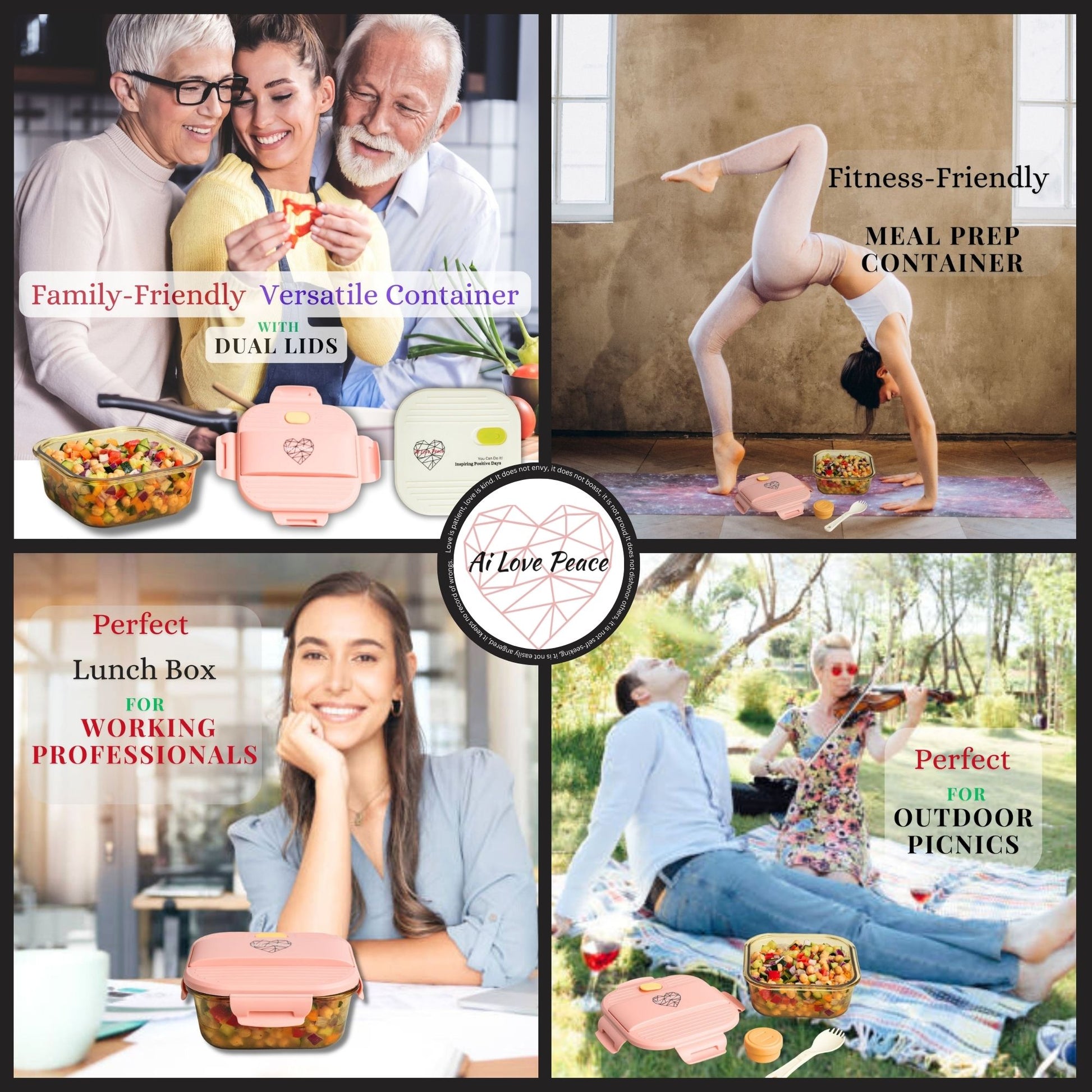Ai Love Peace Glass Lunch Container – Perfect for On-the-Go Meals