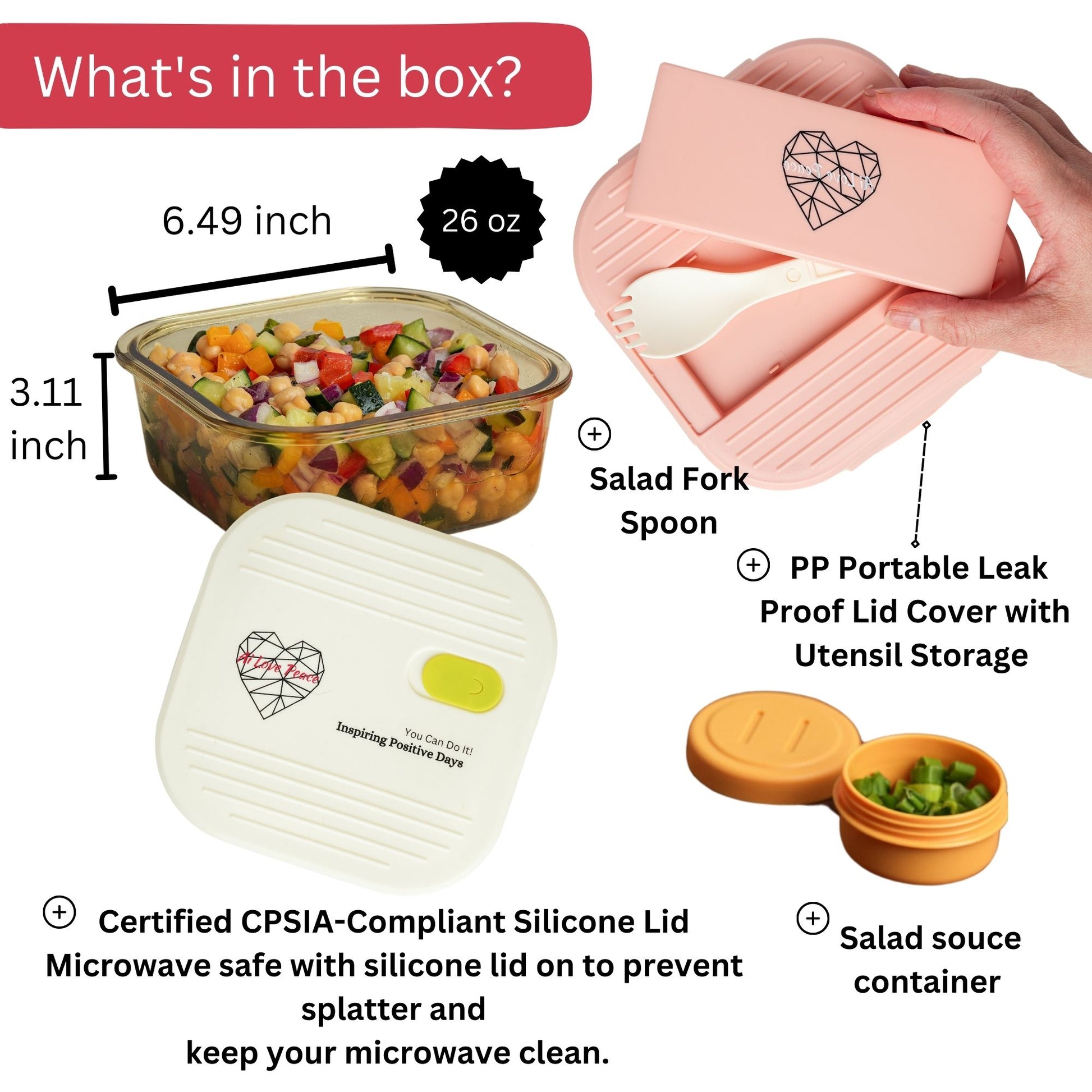 Elevate your meal prep with the Ai Love Peace Glass Lunch Container. This 26oz container is made from premium borosilicate glass, ensuring durability and long-lasting use. It features a microwave-safe silicone lid with a steam-release vent, perfect for splatter-free heating. Whether you're storing salads, pastas, or leftovers, this container keeps your food fresh with its airtight, leak-proof design.