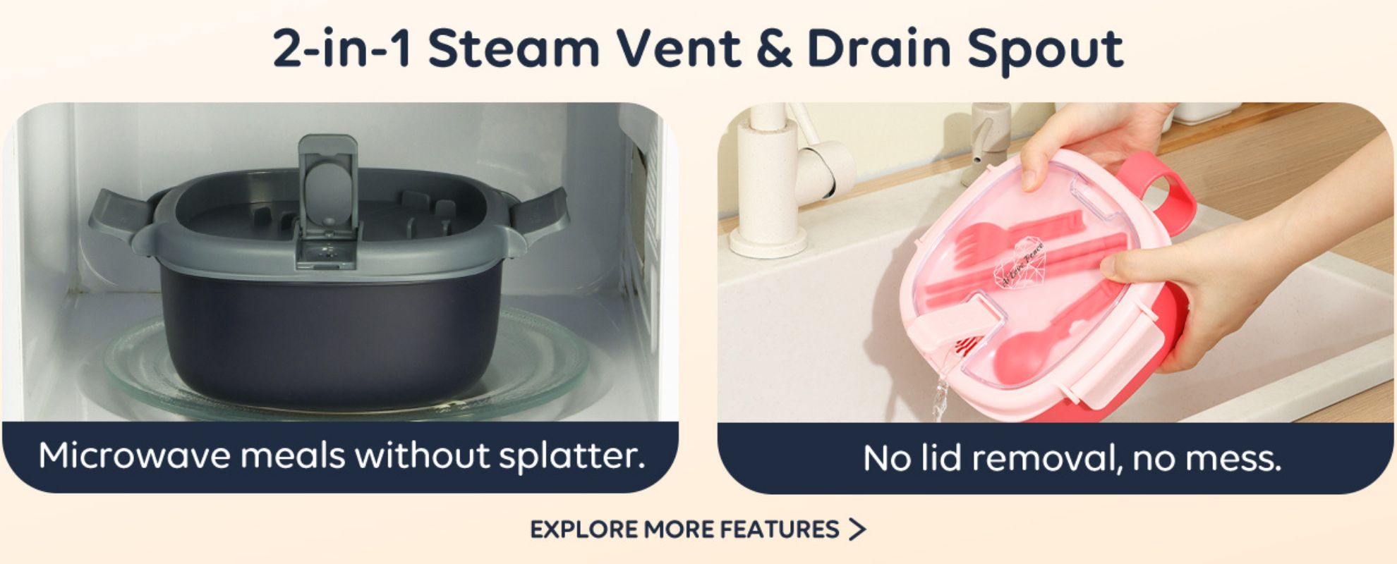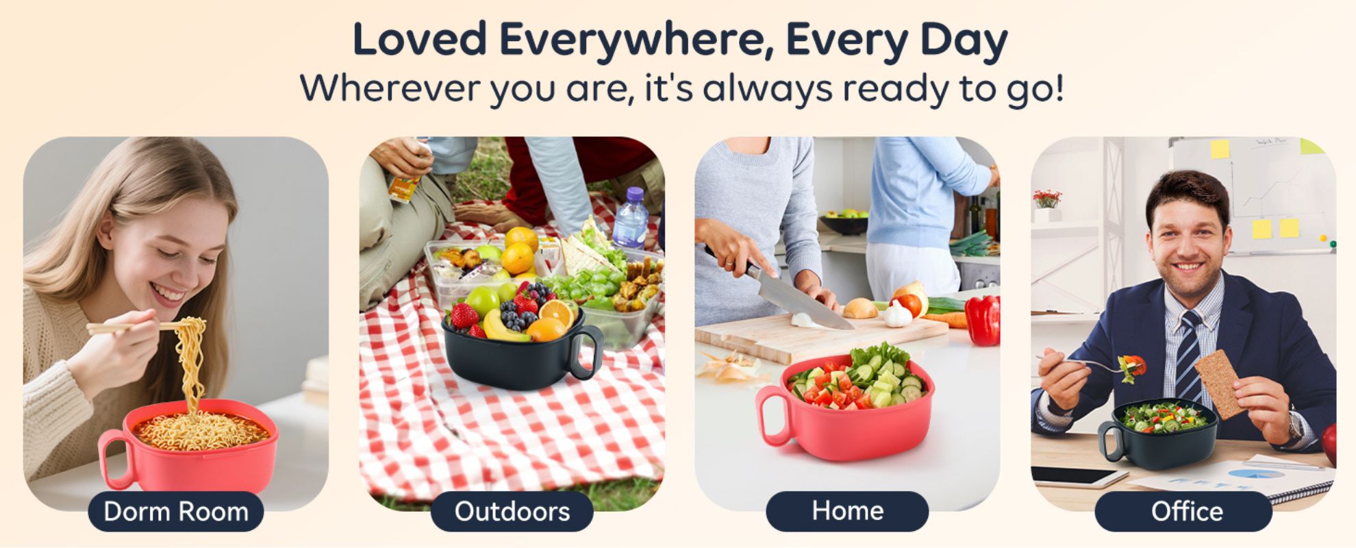 Microwavable Ramen Bowl - Leakproof Container with Lid & Built-In Utensils
