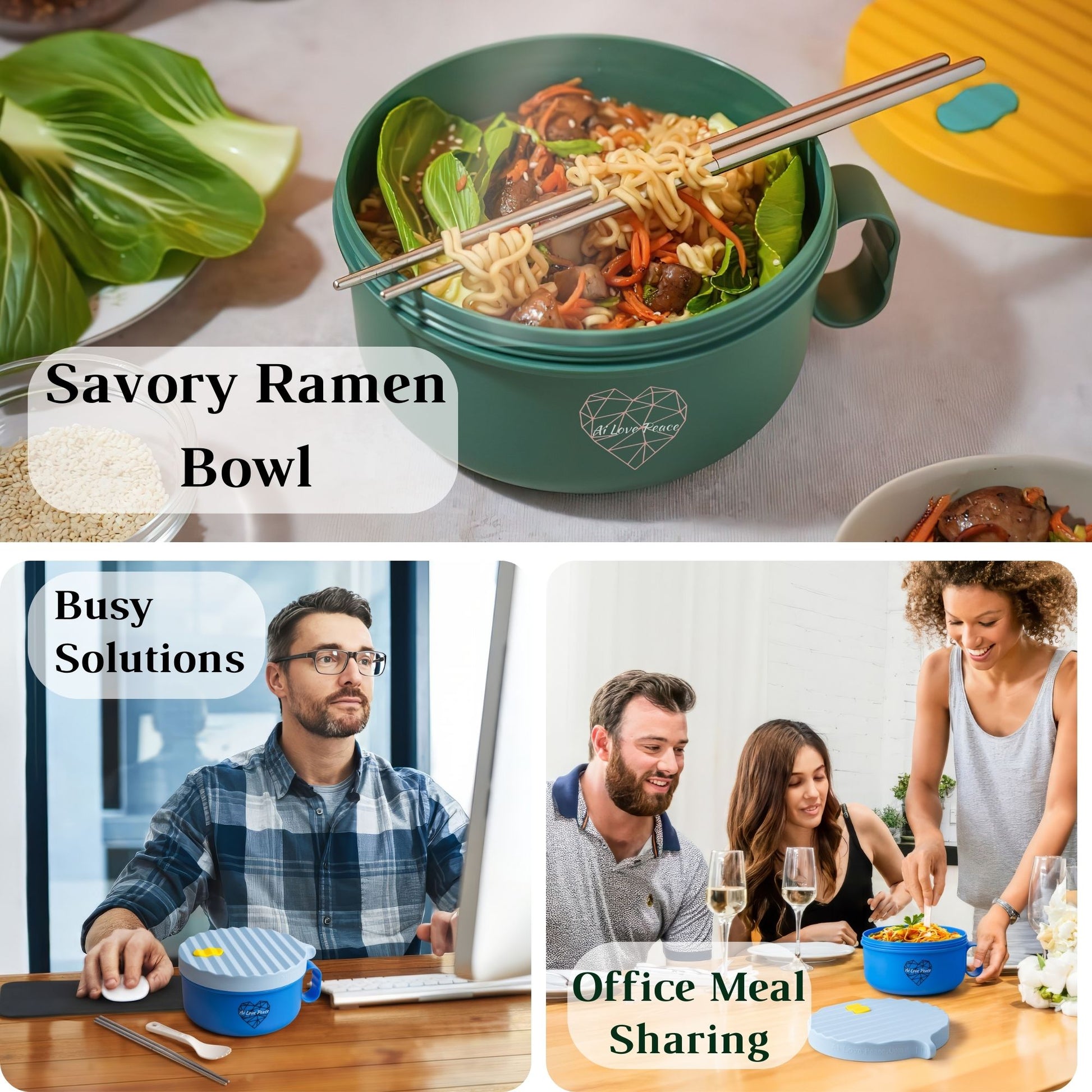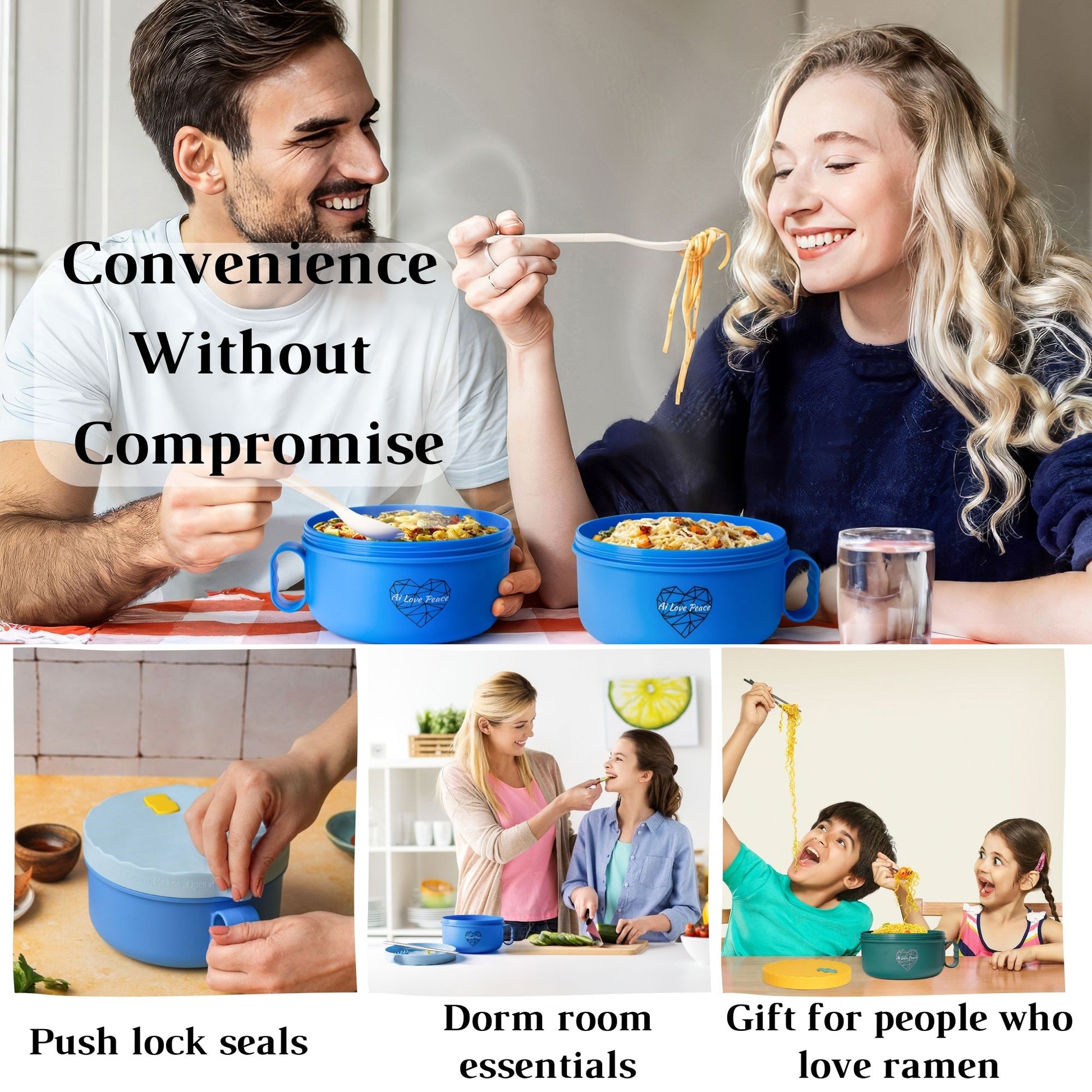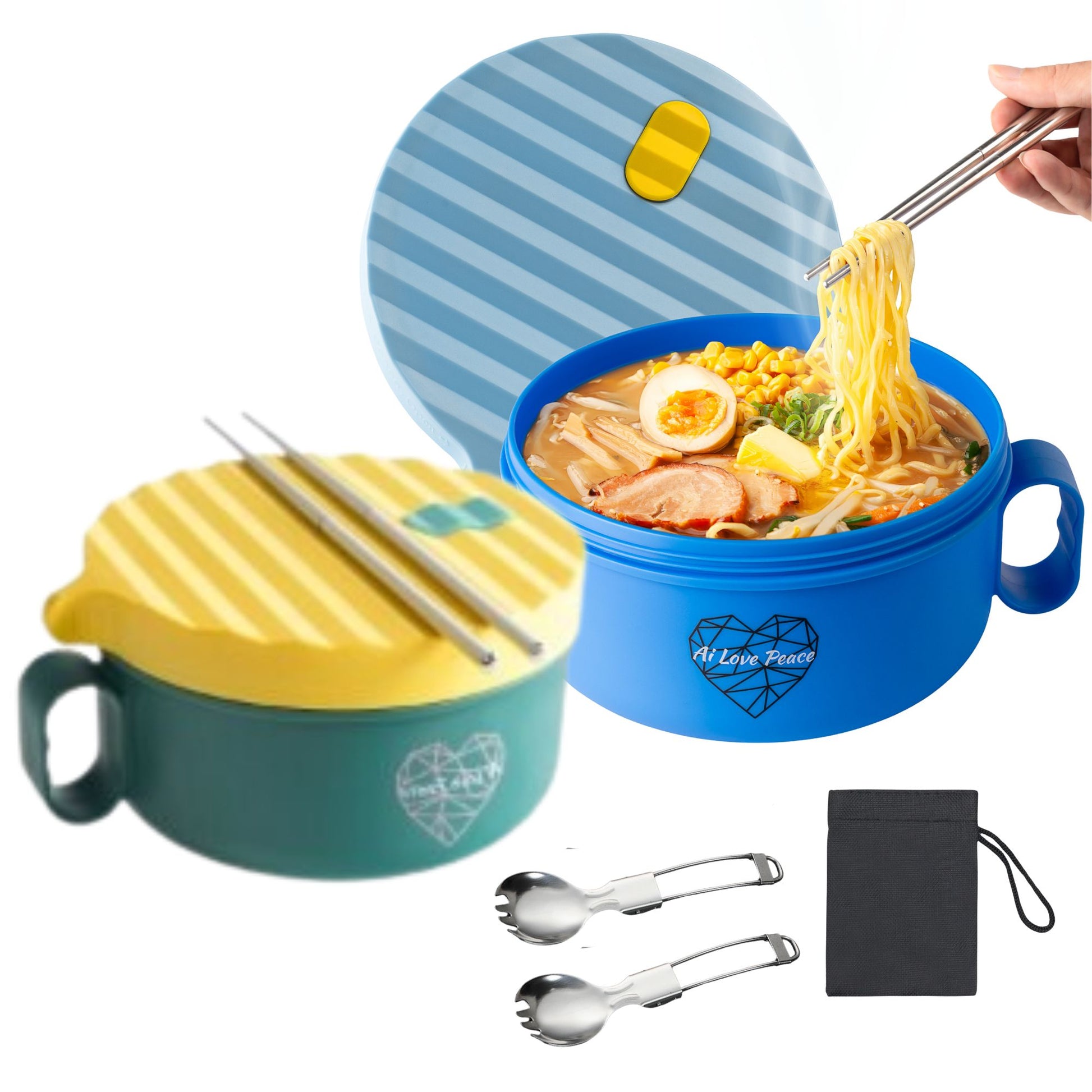 Microwave Ramen Bowl Set – Heat, Eat & Go | Leak-Proof with Folding Spork & Utensil Bag Success Active Submit Title
